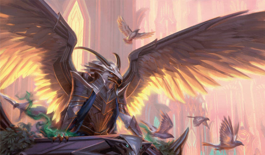 冯柯站在阳台的门旁,那裡的风轻轻地吹动著他的羽毛。他的翅膀隐约地罩著他,就像祈求者将王冠拱起举过国王的头顶一般。以一个艾文来说,冯柯宰制了全场。当佩力抵达时,他得以一瞥毁约者们的感受。当他的肌肉和笨重的外套佔据满空间时,聒噪和其他氛围都安静了下来。
