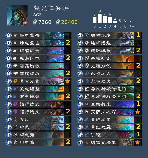 来自EpicTroll的一套机械法,他使用这套卡组以40场70%胜率在刚刚打到传说第22。