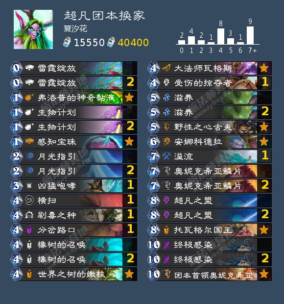 夏汐花的超凡德,它使用这套卡组在刚刚以27-15打到传说第1。