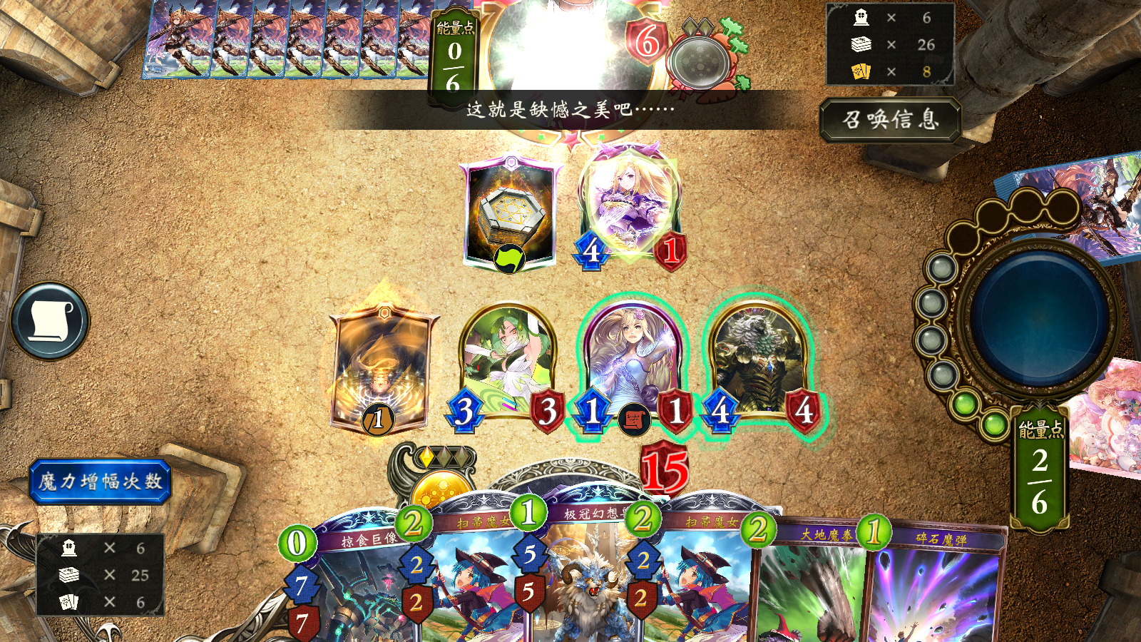 对弃牌鬼时,第2~3回合优先通过碎石、**魔拳、激奏极冠解场,或结晶禁书库、废墟,或使用魔力填充(2种效果均可)。