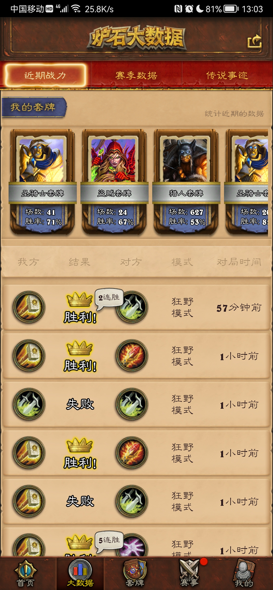 13场对阵盗贼,其中有12把都是海盗贼,胜8败4