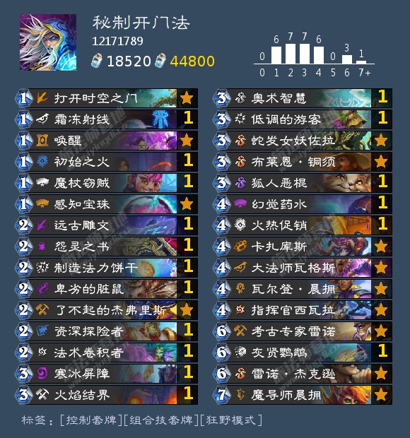 多次调整之后感觉现在的构筑差不多是节奏最好的了,宇宙法的低费随从就是好用可以丝滑地混过前期。