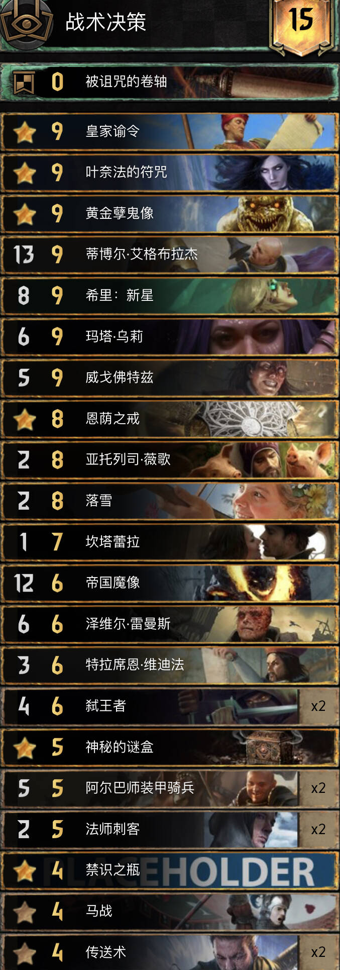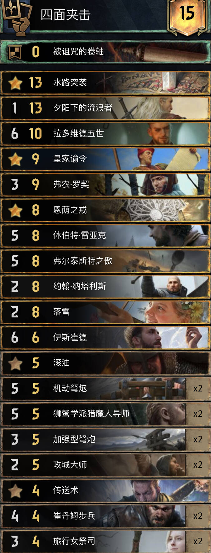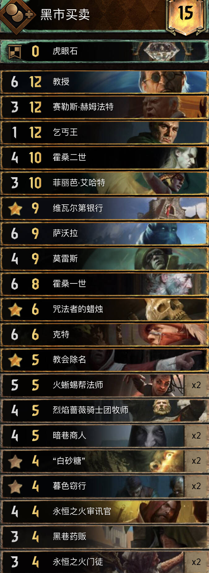 第三过分的恶卡是北方4p调度铜卡,4p3点每次调度+3,对局一把完美调度起手换2次+领袖2次+小光头2次+落雪洗牌鸡2次+抽牌猎魔人3次+行脚商人2次,也就是13*3也就是39点最大值点数,当然正常对局平均调度点数大约在21-24左右,4p24的身材已经够离谱的了,配合崔丹姆和巨魔魔加倍,我在几把调度北对局中r3拉点差拉到了六七十多点,被后手调度追了超过50点,这个模型爆炸程度建议把戈多删了,除帝国外其他阵营几乎没有反制手段(迪迦有个无赖定向检索,群岛只有熊老大可防,中立拉牌全都是随机的)这个卡组最离谱的在于,核心卡全在4p,意味着上面的卡池想带什么带什么,你甚至可以再带一整套围攻或者战灵完全不影响构筑。