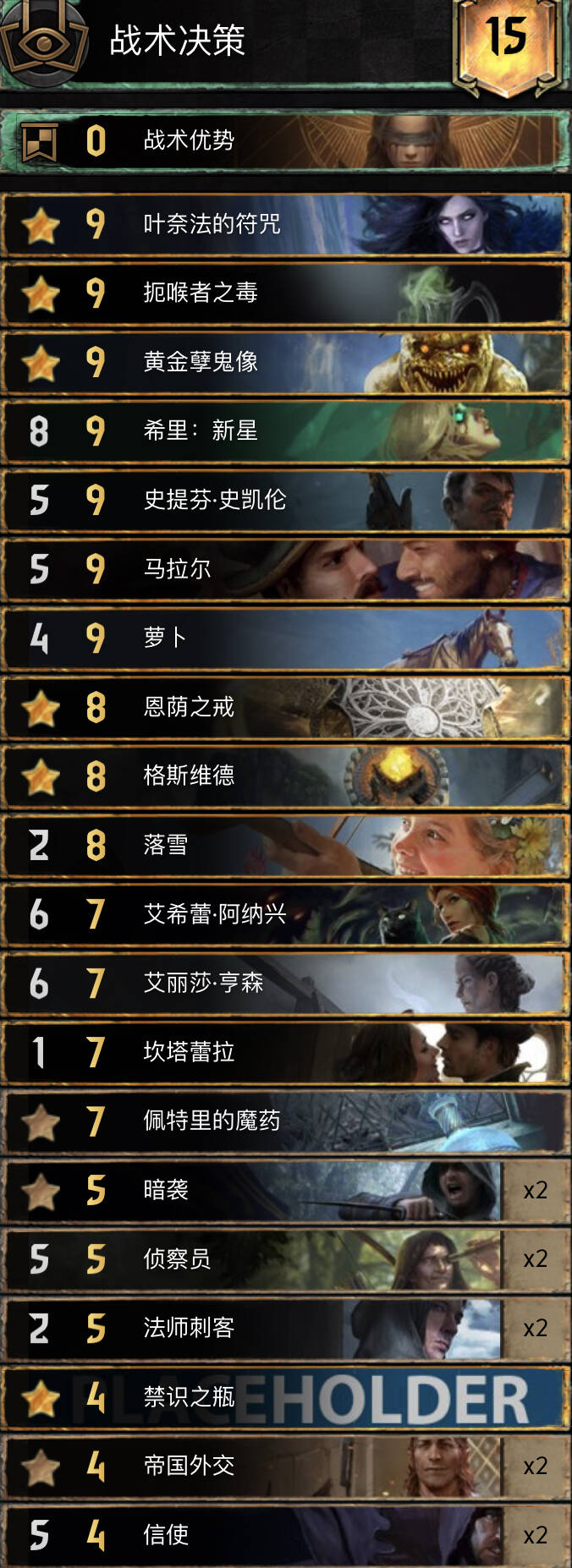 调度和孽鬼卡组,无论是模型,还是过牌,还是卡组构筑稳定性,都是远超上版本所有卡组的。除了严重超模的问题,调度比孽鬼更恶心人的问题在于昆特现在出的所有卡池里面,除了帝国以外没有几张可以反制的卡牌,这个问题和西格一样,你CDPR出了矛,却不出盾,那不就是逼着大家只能用这个卡组才能赢么?