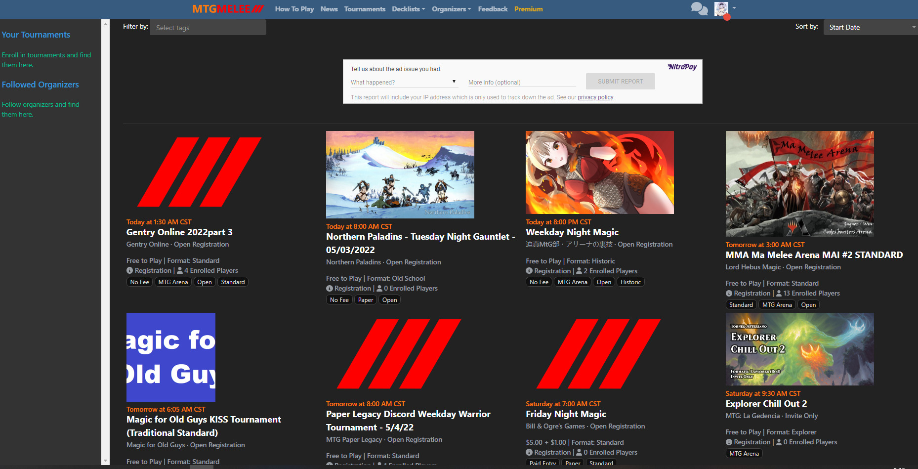 这两位可能有些新玩家不太了解,MO全名Magic Online,可以说是实体万智牌的线上版,连卡牌交易方式都一样,货币也是基本对标美元,有先驱摩登薪传这些永久赛制;Melee是现在最常用的MTGA比赛网站,每周都会有些竞技性较强的比赛,也是MTGA牌表主要的贡献者。