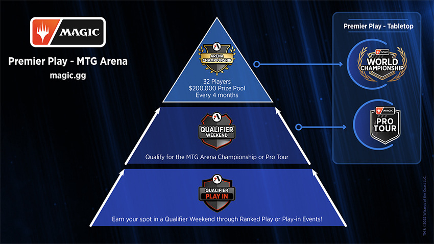- 2020-22年:线上冠军赛,MTGA PTQ中Day1和Day2均获得7胜的玩家可获得PT资格。