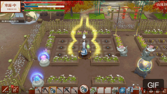 在耕种的同时,玩家可以运用仙家法术来协助种田,如召唤雷云对大面积的田地浇水,亦可催动符咒促使作物快速成熟。更有一些充满奇思妙想的仙家法宝,让你能够预知风云,甚至解放双手自动浇灌灵田。