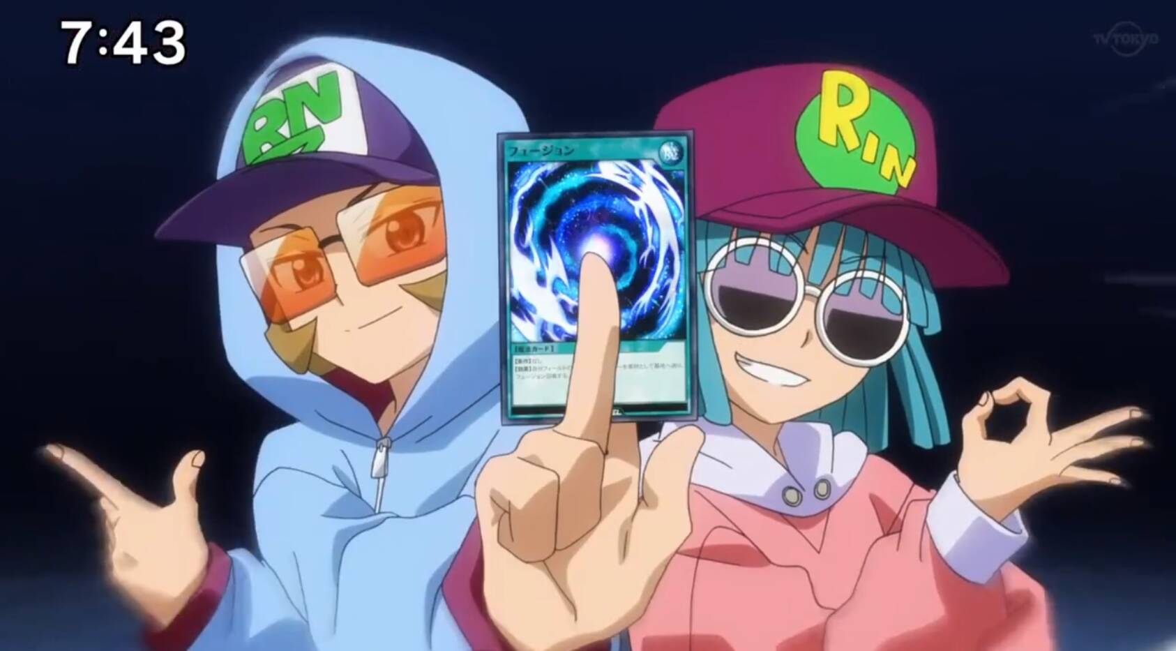 此时双子开始演起来了。说自己没抓到怪兽,抓到了绿色的卡。结果抓到的是结合。