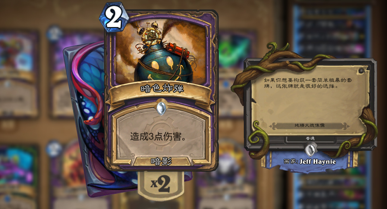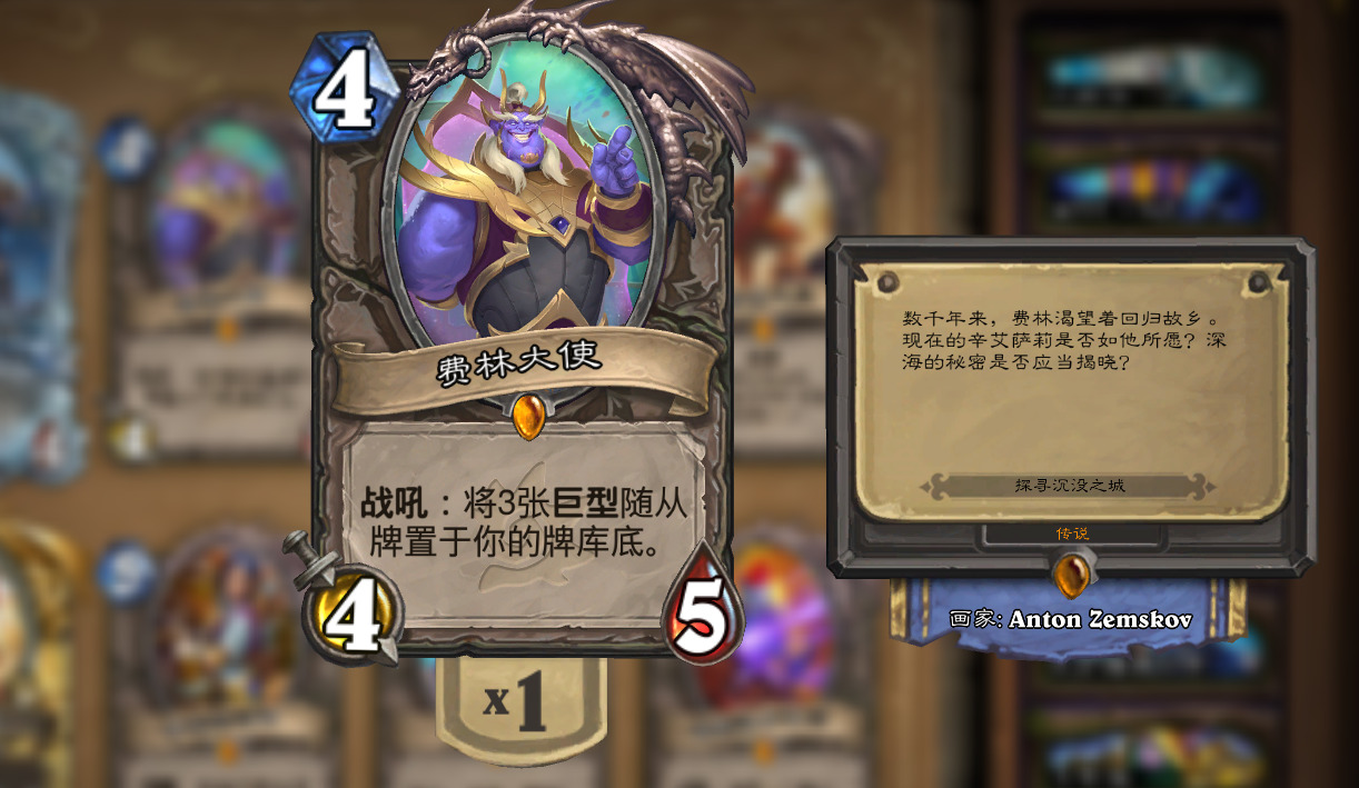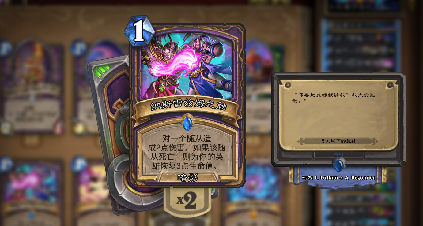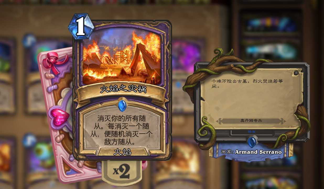 解场铺场回血于一体的好卡 宇宙破就破了 就一张姐夫一张雷诺 注意!!!! 探底完用技能抽会打乱排序!!!打快攻时有较好的表现 打战吼萨这种控制或者超凡德开门法等otk前期基本都是抽的 塔姆辛有可能卡在手里 建议快攻多的环境加入