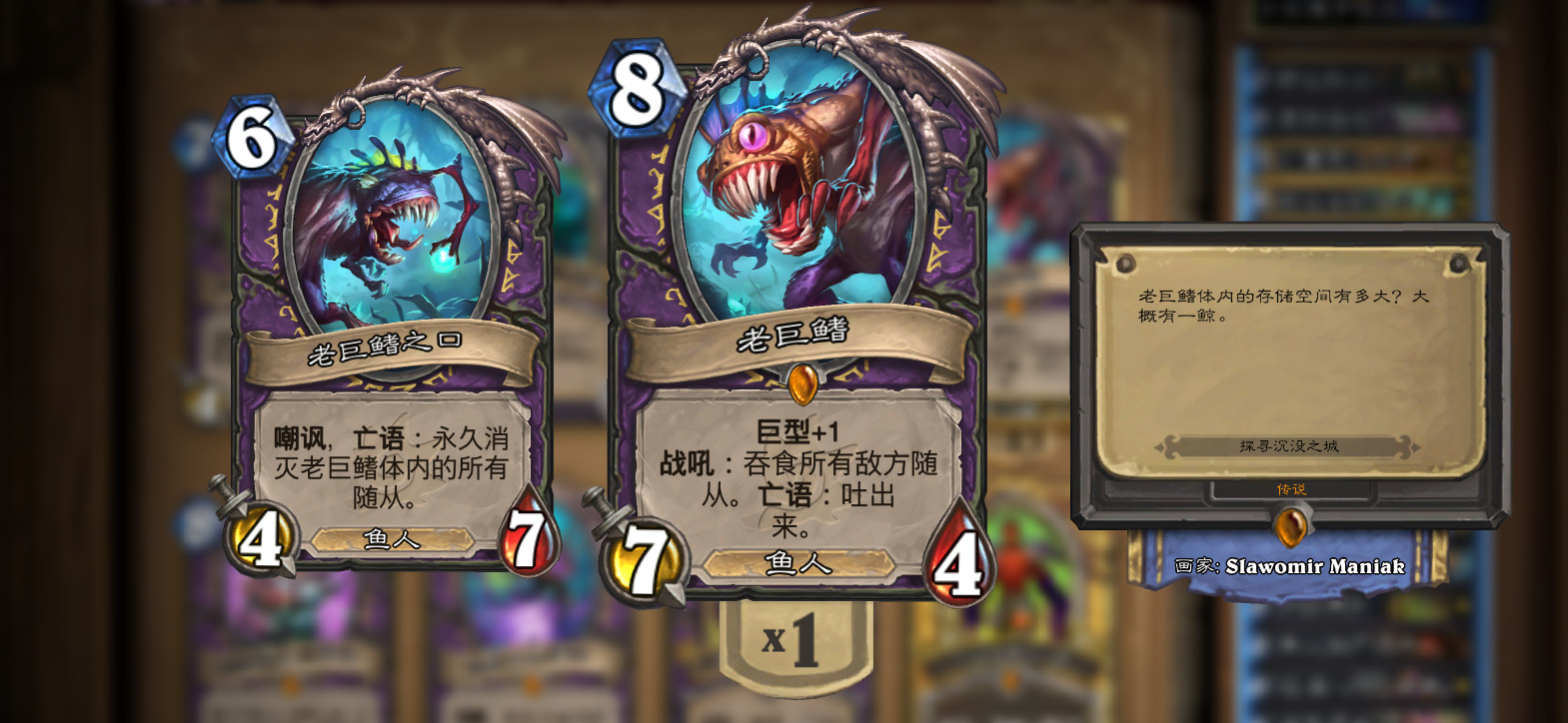 看了一个老哥的宇宙术帖子大受启发 有了暴风吸入和吃手手两张鱼人之后可以带鱼人体系了 鱼人大厨人称大冰钓 能有更高概率打出4+8 4+7 甚至铜须4+7的梦幻combo