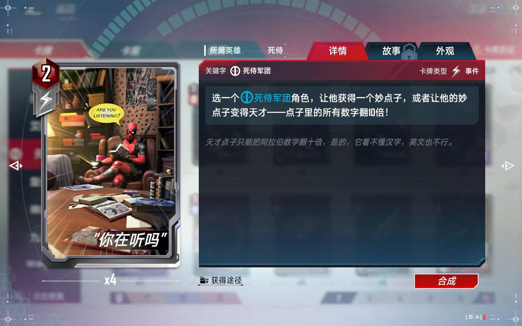 设计师也知道“你在听吗”不够用,所以专门加了女死侍来增加妙点子,注意这张卡的用法是:
