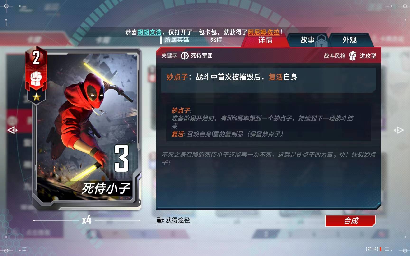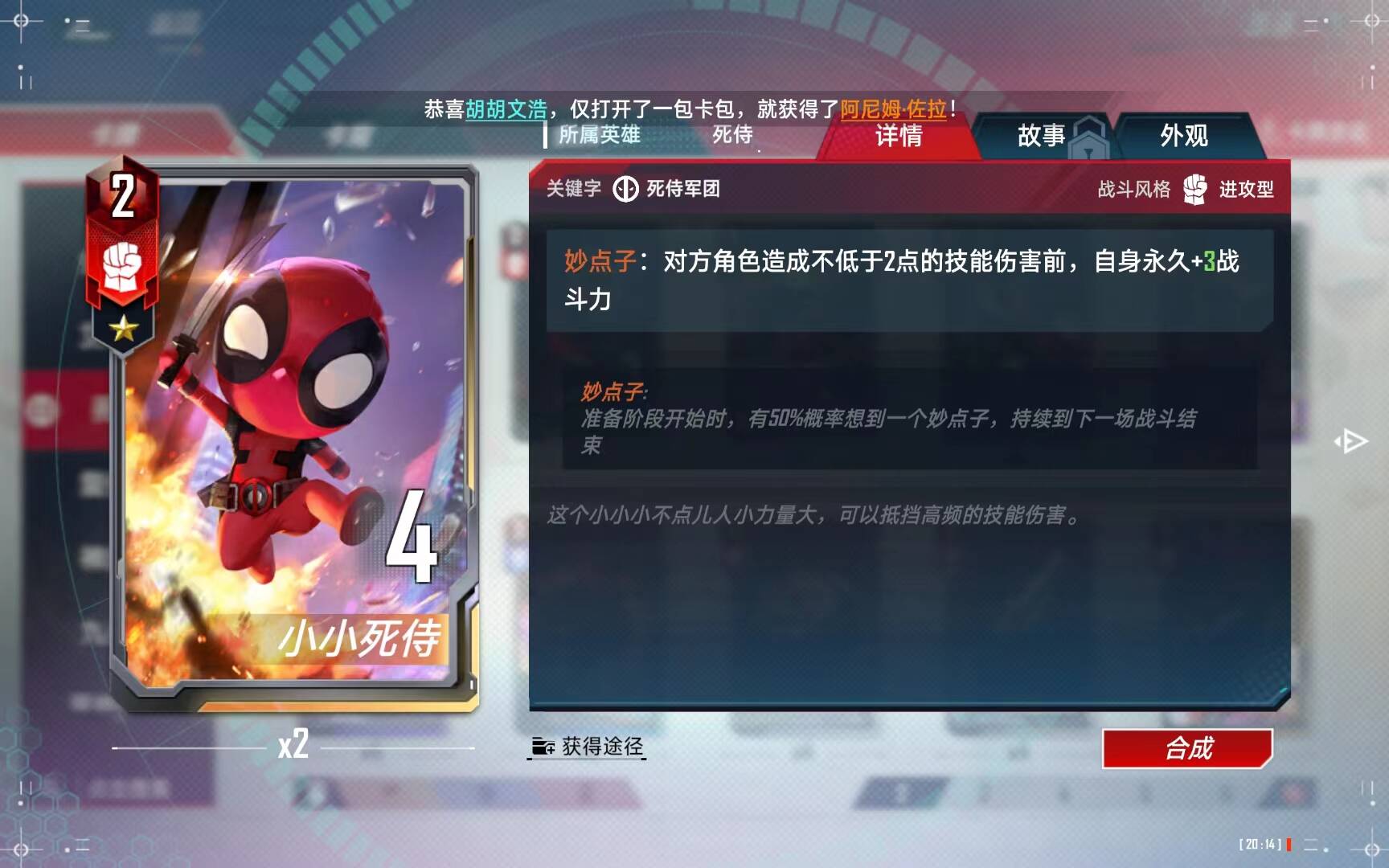 (3)、合成指数:不建议合成,抽两张足够用了。