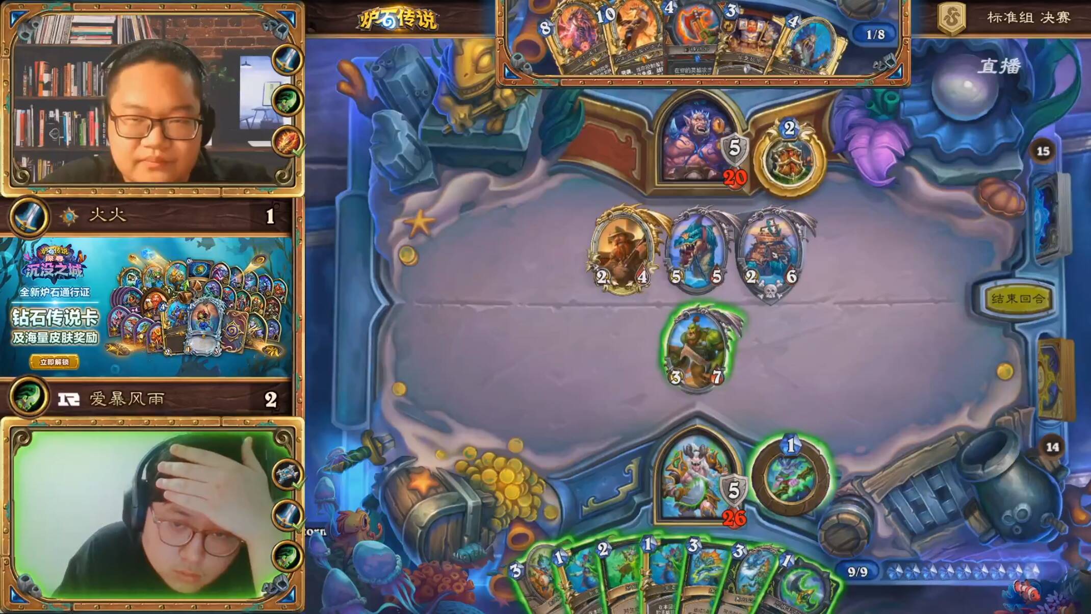 尽管比赛距离平衡补丁上线不到一周,但在这之前已经进行过了大师巡回赛,标准环境已经充分演化,32强交牌时也已经高度雷同,偶有两个任务猎在德雷克组件上有些不同。硬要说的话,最大的亮点恐怕要数德鲁伊的进一步减少,不过这在很大程度上也和黄金赛不带ban有关。这可能也是这站八强咖位低的原因之一。