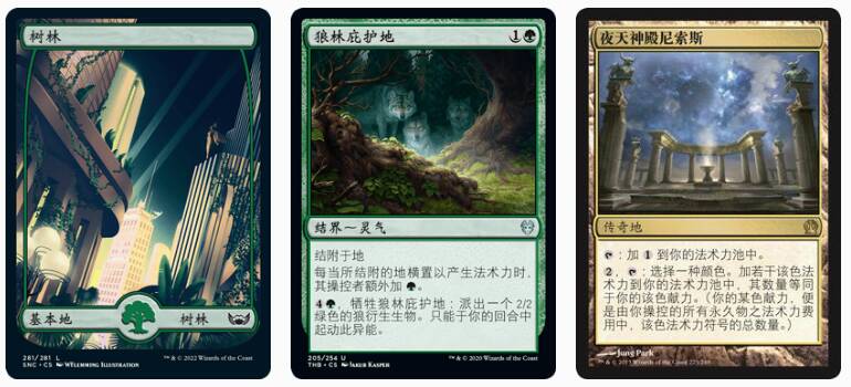 通常来说,在早期下夜殿的话,可能会引来对手的仇恨单卡,比如战场遗迹,也可能让我们在施放原生林巨魔这种多个绿费的生物时有些麻烦,因此在需要爆费的当回合下更为稳妥。诚然,对手有伊美黎统领时这么干可能会翻车,不过在这种对局提前把非基本地拍下来就好。