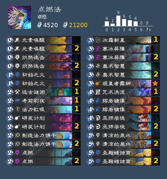 来自卓格的一套点燃法,它使用这套卡组以45场56%胜率打进月榜。