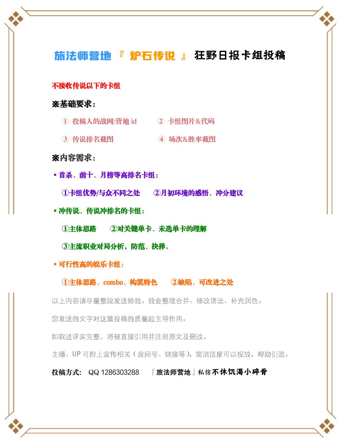 今天的卡组很多,狂野日报总是这么扎实,碎骨也勤勤恳恳,简直是我偶像,大家点个赞鼓励一下吧。