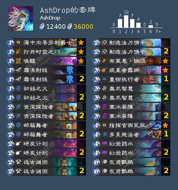 6.多系施法者:费用较高,很多技师觉得卡手不好用的牌,但我自己觉得挺好用,过2很多对局其实就可以接受了。我上c后最终构筑就是把前面的一张奥术智慧换成了一张多系。