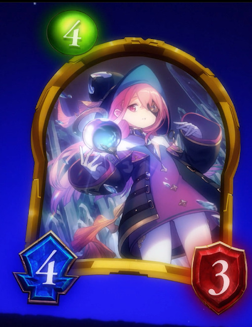 4费4/3 入场曲:将一张【土之魔片】加入手牌,并将其费用变为0;每当有【土之印护符】进入自己战场时,给予对方主战者1点伤害