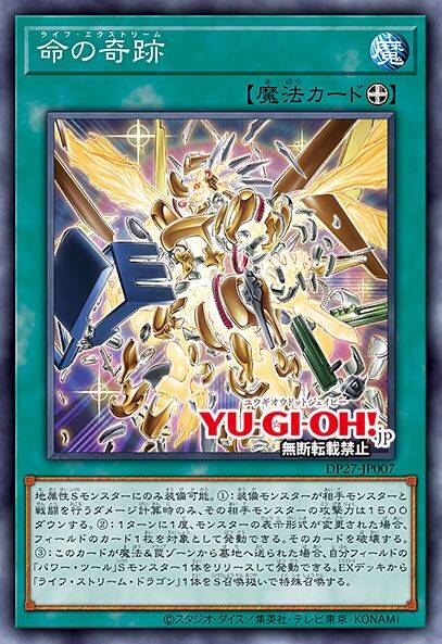 ③:这张卡从魔法与陷阱区域被送去墓地的场合,把自己场上的1只「强力工具」怪兽解放才能发动。从额外卡组把1只「生命激流龙 」当作同步召唤特殊召唤。