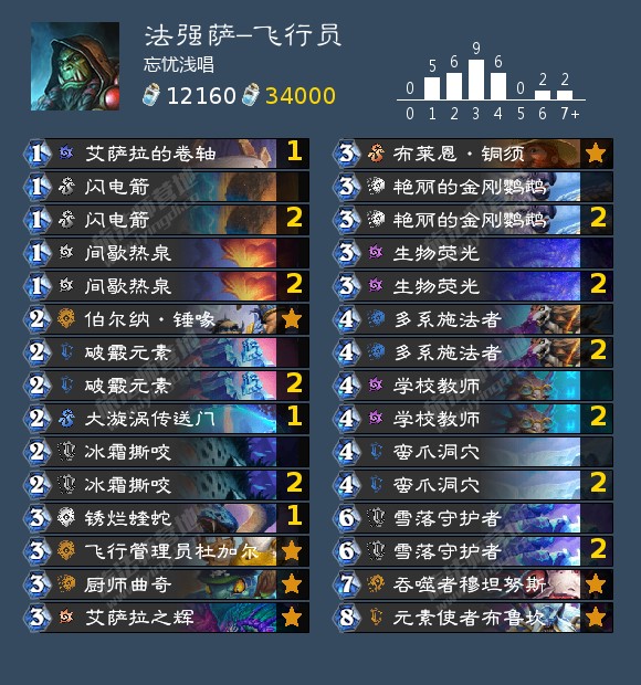 - 艾萨拉的卷轴:个人非常喜欢的牌,弥补1费曲线、面对瞎子可找清场、奶、冷风、伤害,很看脸也很全面的一张牌,面对战士可多找伤害,面对小德尽量找闪电箭!