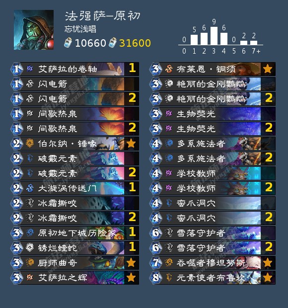大家好!我是一名长期混迹在传说守门员的萨满玩家,ID:忘忧浅唱#5999,好像这是第二次在营地发卡组推荐帖,这次完全是心血来潮哈哈,太喜欢这套了已合金,大家可放心服用。不管萨满强还是弱,从内测一直玩到现在,这或许也是本人情感执拗的原因吧,废话不多说,切入正题~