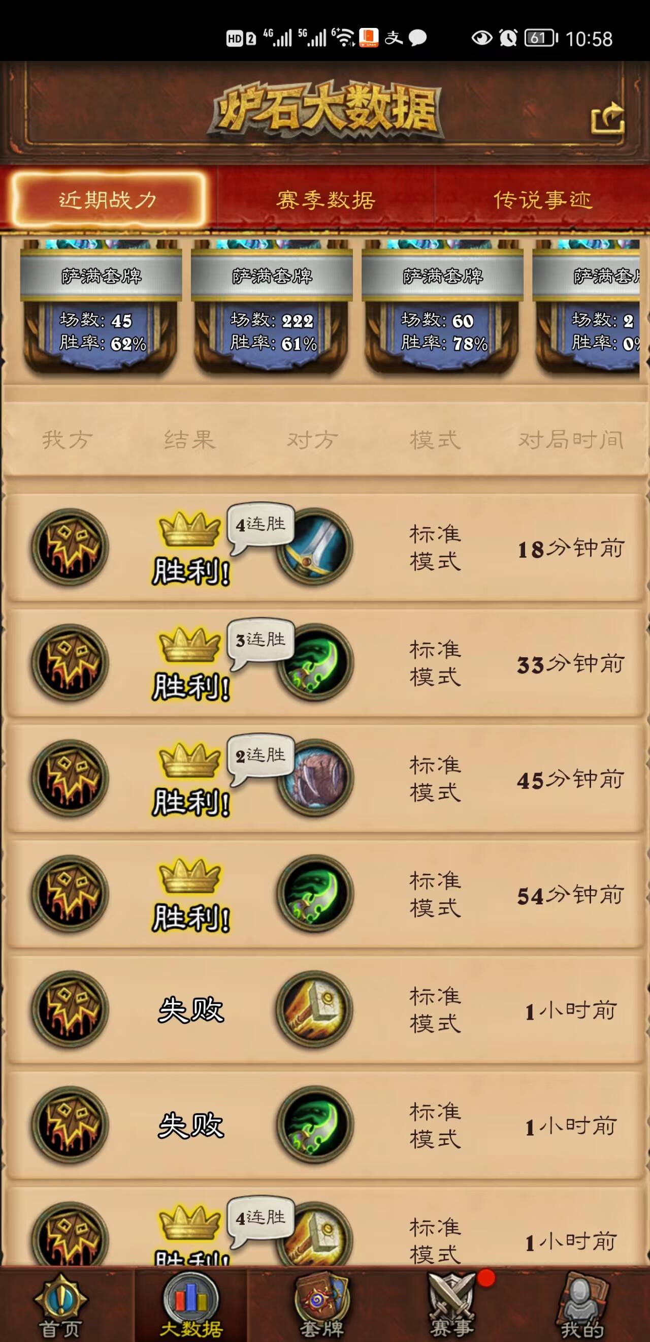 这里推荐大家可以尝试下这套牌,对应62%胜率的,也是改后很满意的一套: