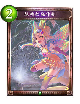 妖精的恶作剧能在前期解场(配合沉眠的妖精之森、妖花或0~1费随从),拖慢弃牌鬼瞬念召唤贪婪的大恶魔·帕拉瑟丽婕的速度。恶作剧还能在斩杀回合解场,针对洁净的领域制造的魔免墙,或死骸金属巨星这种套娃墙。