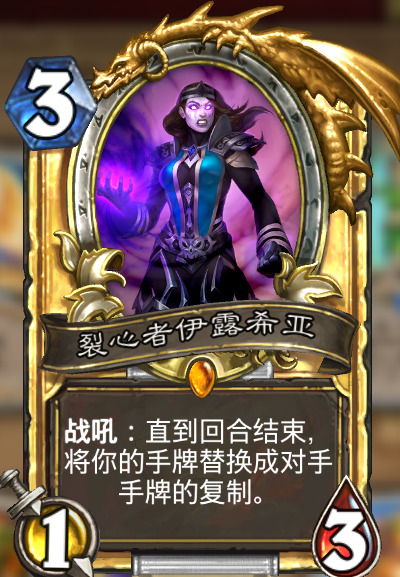 裂心者即使被削弱了,但他的强度依旧还是不错,尤其是对阵鬼灵贼和开门法的时候,可以通过对方手里的暗影步或幻觉药水来操作自己场上的随从来拖回合数,最终取得胜利,有时甚至能无限硬币暗影步一回合斩杀对手。在面对机械法时,对面减费后,也可以通过裂心者来进行铺场,以此来压制机械法。