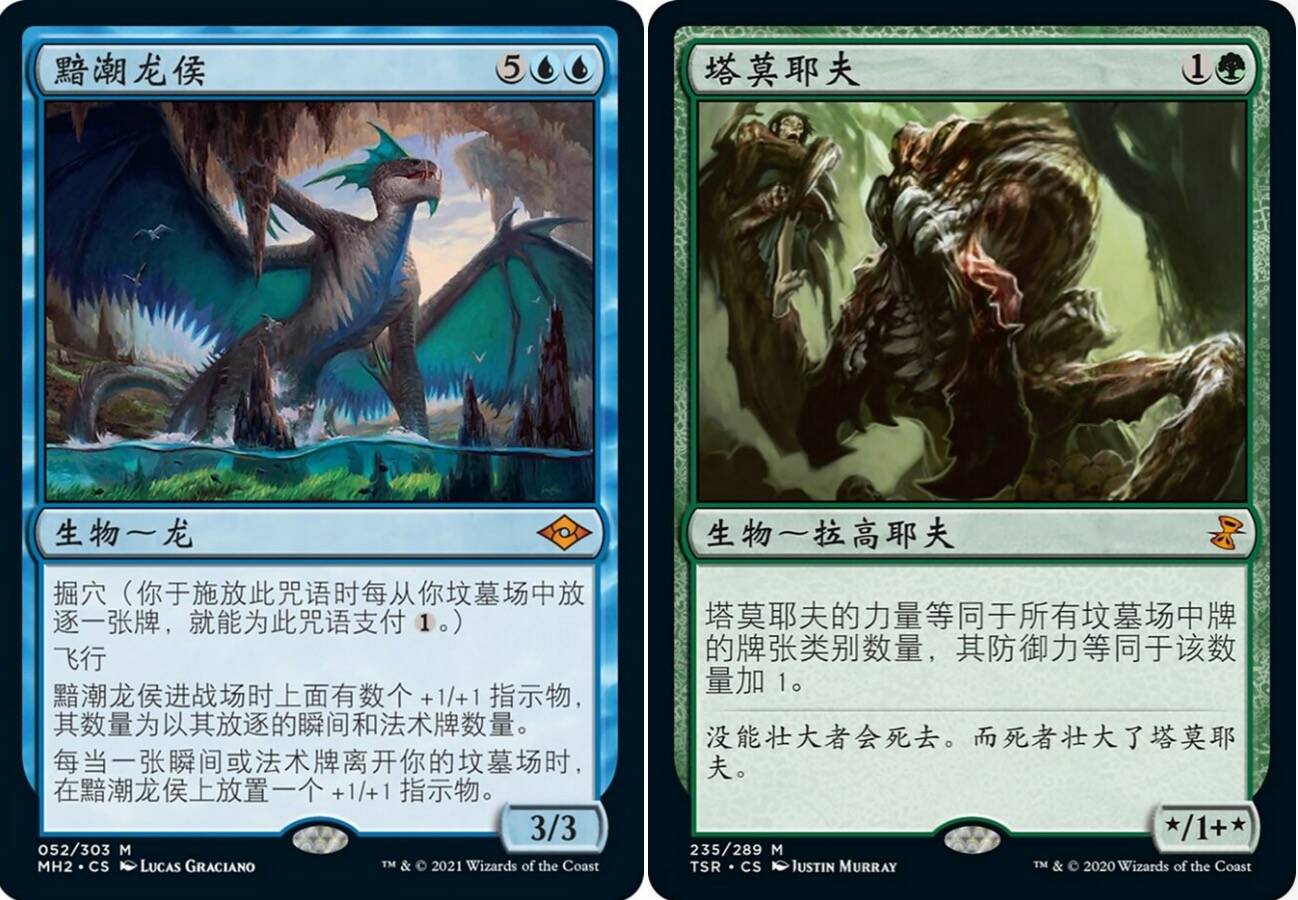 答案是是的,黯潮龙侯和塔莫耶夫确实是一个糟糕的组合。但是你真的不必太在意。这两张牌在相同风格的套牌中都很好,并且他们足够强以至于对手需要迅速解决掉他们。就算你有一个对手打不过的塔莫耶夫并且你将要施放黯潮龙侯,难道你认为你找不到一个方法去解决这个情况吗?你可以选择什么时候施放他,并且你可以选择在你的坟墓场中放逐哪些牌。