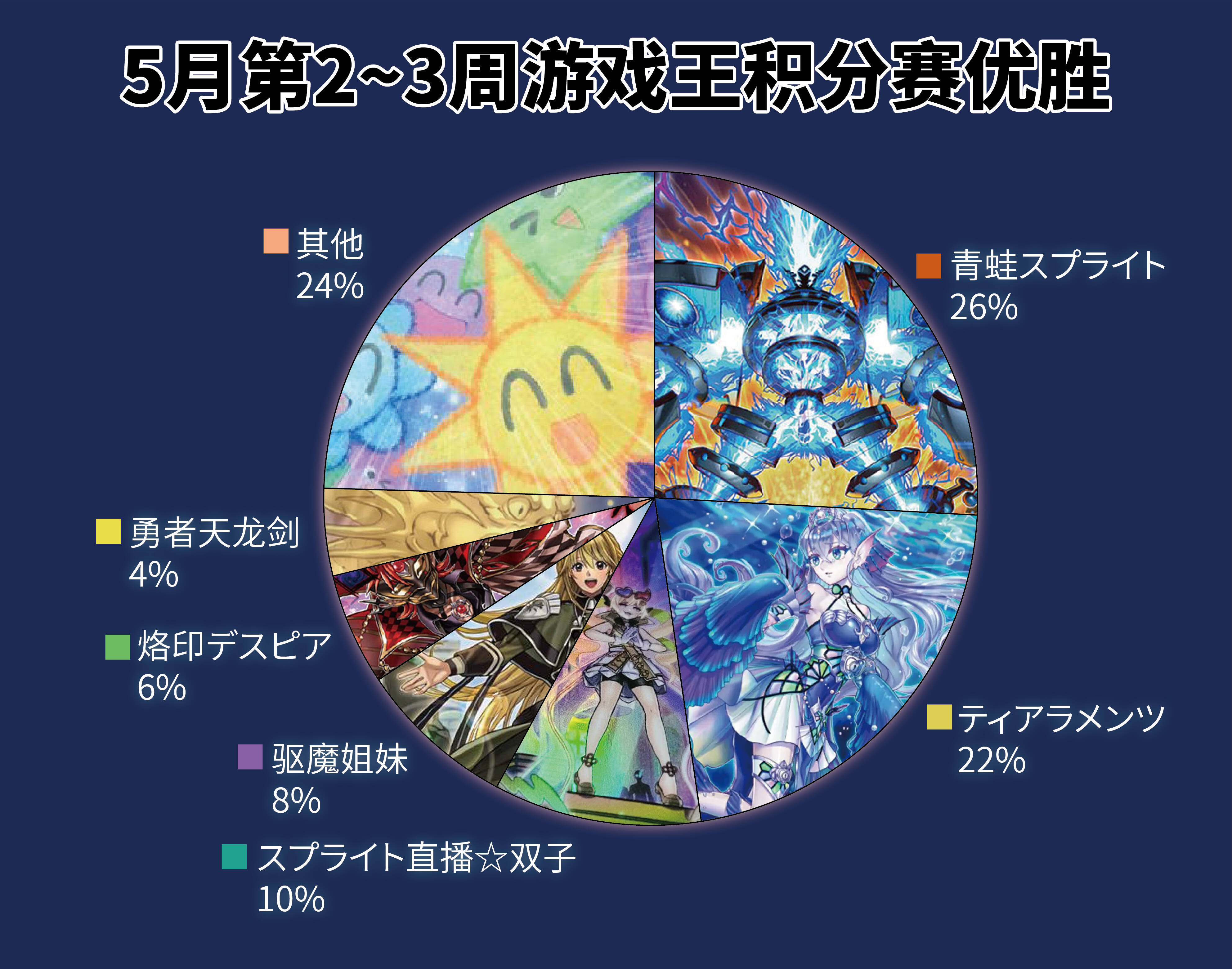 本期的23套青蛙闪灵中,有两套采用了SD38的【幻魔】组件,【幻魔】组件同样可以单卡提供2只等级2的怪兽,优点是第二只怪兽也是通常召唤登场的,可以在米德拉什面前做一次超量召唤;而歌后则因为自身是协调可以通过水机完成更大的最终场。本期我们收集到的闪灵中人数最多的上位是本套采取了幻魔体系的。