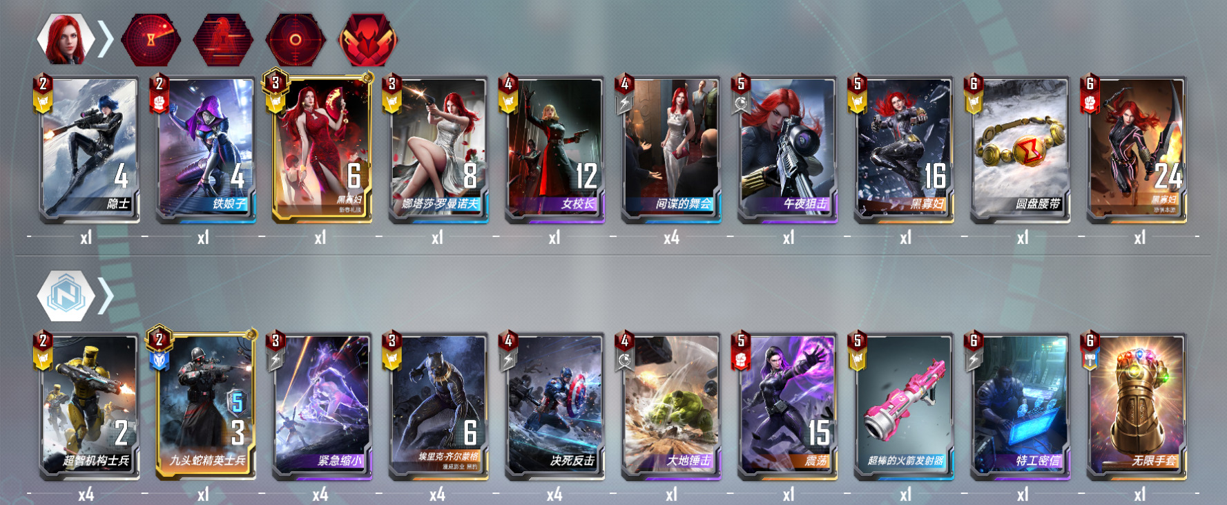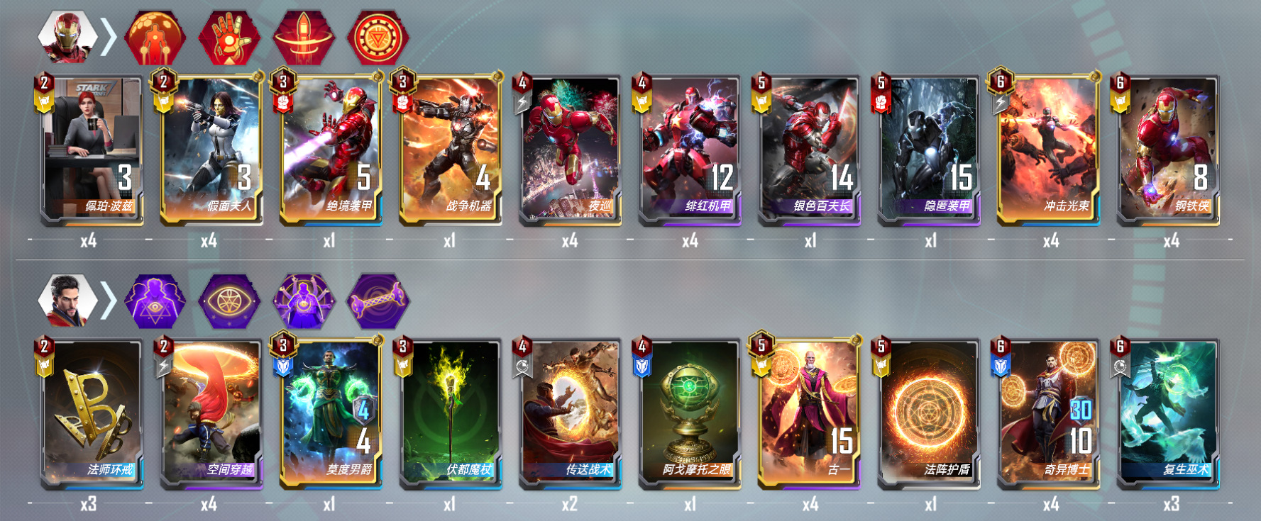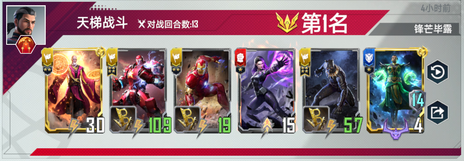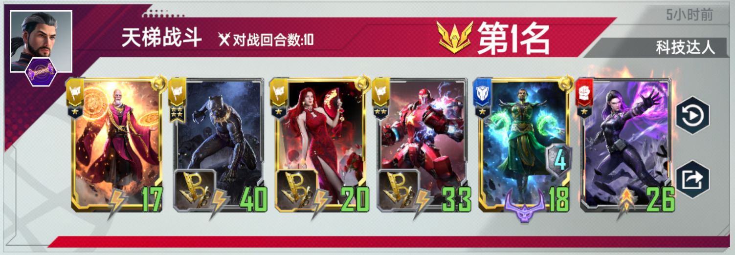 另外一个想分享的技巧是对阵死侍的时候,钢铁侠可以卖掉,提前击毙死侍单位其实是提升了对方的启动速度,得不偿失。这一点在对阵神盾局的时候也是一样的,博士在对阵这些卡组的时候是需要反复横跳的时间的。