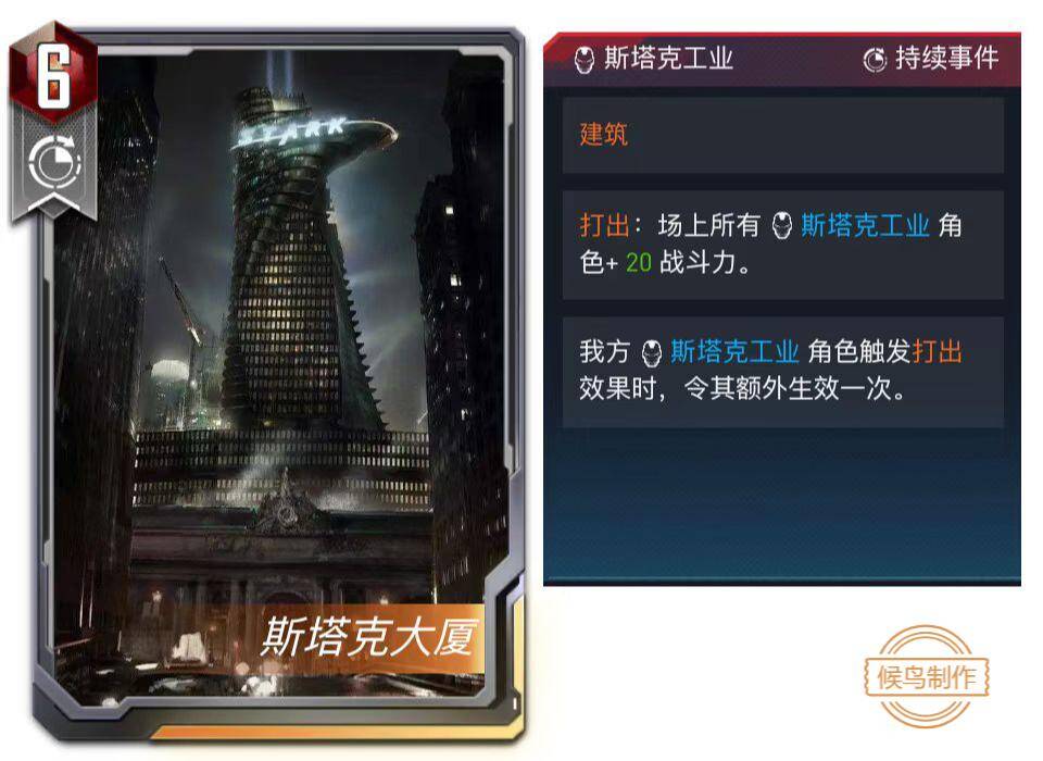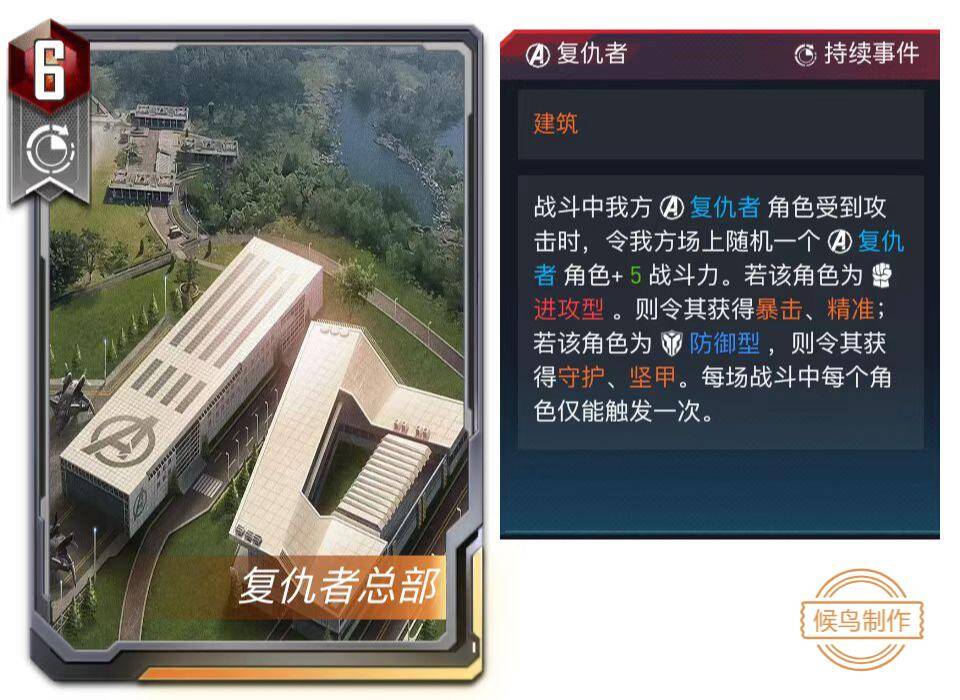 本次(伪)新卡速递给大家带来了一个新的词条【建筑】,这个系列预计会分为两期,第一期共有六张全新的单卡加入现有的卡池之中,设计灵感源自桌游《漫威群英传》中的建筑类卡牌,目的是给在场上鏖战的英雄们一个稳定的支援。那么废话不多说,上新卡!