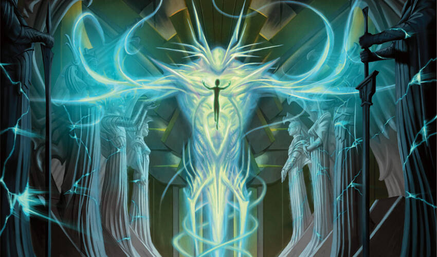 不过欧尼希兹却往后踉跄。空气颤动,扭曲了他周围的一切。它向自身折叠,以难以感知的方式瓦解了欧尼希兹的形体。一眨眼间,他就消失无踪,穿越时空离去。