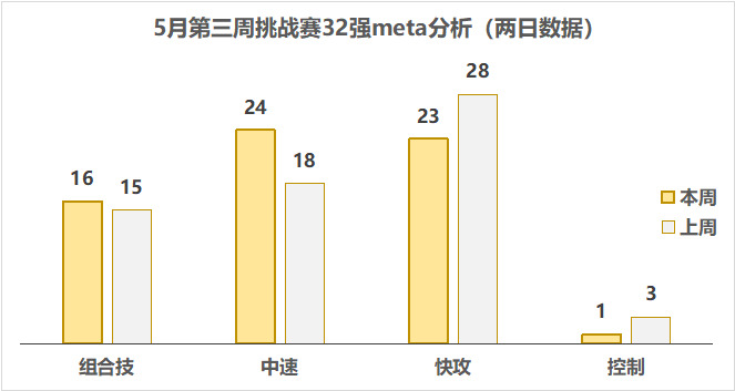 套牌类别方面,本周中速套牌相对上上周有较大幅度增长,快攻、控制套牌则有一定程度的下降。