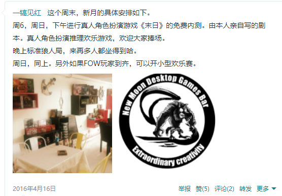 不过有一个活动令我印象深刻,那就是红叔原创一个剧本游戏《末日》,那年是2016年。