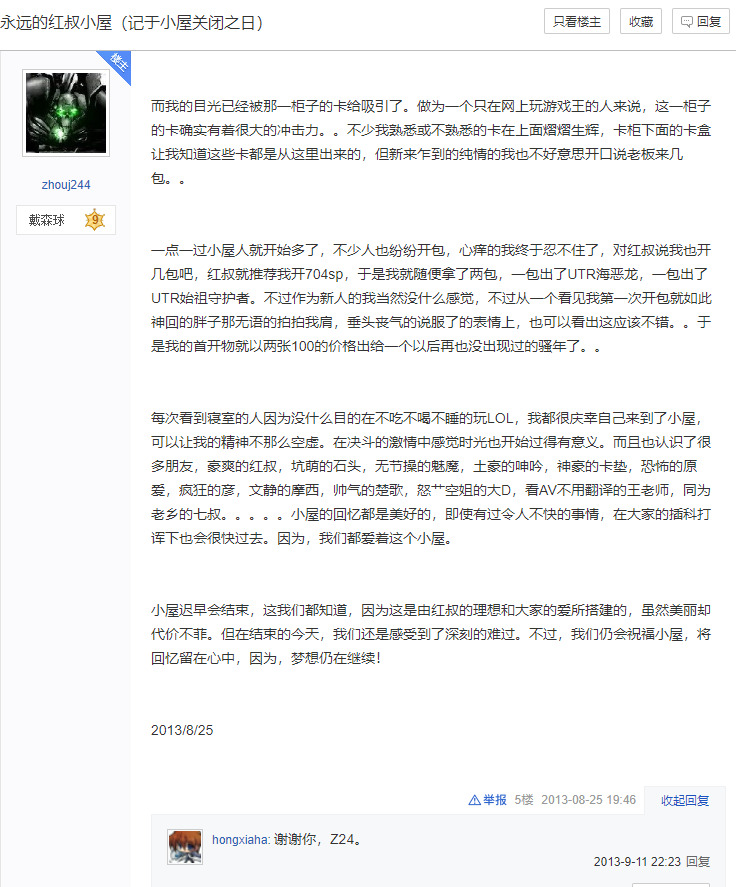 关于红叔小屋还有很多珍贵的记忆,比赛的故事。不过这一切都停留在了2013年的下半年。