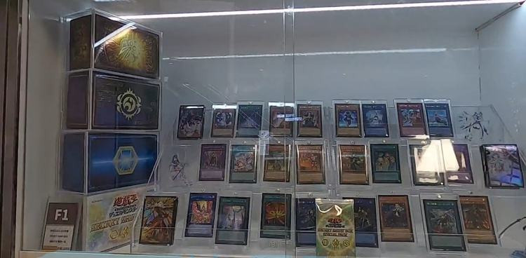 作为一个之前只看过动画,很少接触正版实体卡的准入门玩家。店内玲琅满目的游戏王产品着实惊艳到了我,我无法想象游戏王卡片原来是可以像金银首饰一样一张一张排放在玻璃展柜里的。每张卡都在灯光的映衬下闪耀着颜色各异的光芒,我凑近了玻璃仔细观摩才发现原来它们的表面都有印着非常美丽的纹路,或者说工艺。