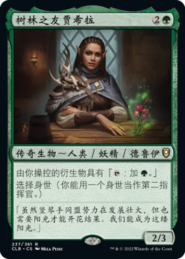 在这裏贾希拉从原本的位置—后来变成明斯克—移到了她最后被印行的位置上。这个版本利用了德鲁伊的天性,而非动物形态转变的能力。你可以看到这张牌补上了凯根原本的类似机制空缺(这也是她被换位置而非在原本的位置上做修改最主要的原因)。