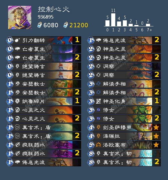 2. 剑圣萨穆罗:在卡组中能配合心火,真言术:韧作为解站一体的aoe 。