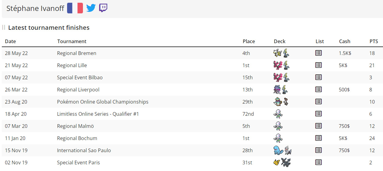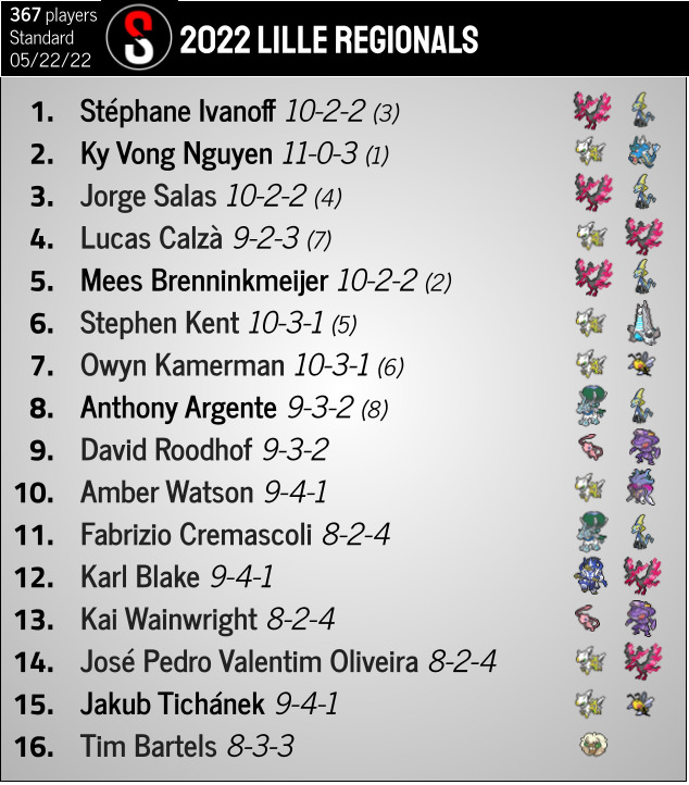 十六强排名如图,大家感兴趣的卡组也可以到limitlesstcg上去查看。