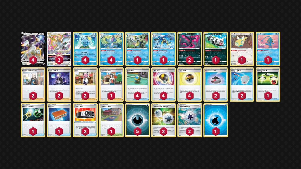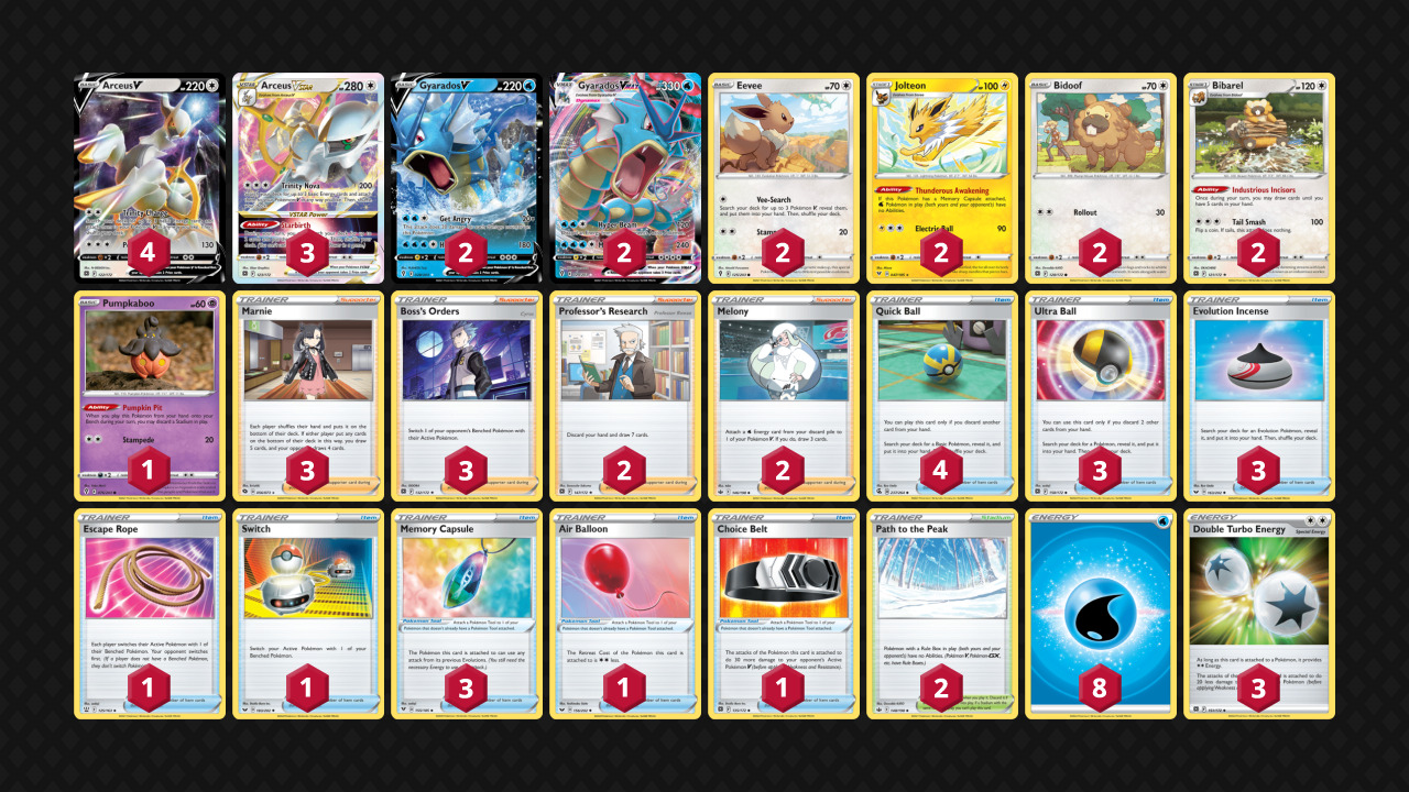 亚军卡组也是最近非常流行的一套构筑,千面轴的泛滥导致现在很多阿尔宙斯卡组都携带雷伊布来针对千面,而自己则采用大尾狸去做一个辅助手段。暴鲤龙是比较契合宙斯需要的水能量与美蓉,并且契合雷伊布必要组件的记忆项链,可以让暴鲤龙抗住一次伤害后用进化前的技能打出巨大的爆发。