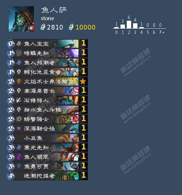 自从沉没城版本我一次瘟疫萨都没有赌过,因为瘟疫萨甚至打不过机械法,那我为啥要赌他呢。然后这次迷你包里一张神卡小丑鱼,让鱼人萨的天湖的场面膨胀的离谱,可以称它为斯卡布斯.鱼油,我用小丑鱼甚至能在月榜用鱼人萨兴风作浪(也就打了两三把)。至于迷你包的另一张鱼人就没那么强了,完全可代替。至于打法,鱼人萨尽量在1-3费铺出让突袭战一时解不完的场(突袭战一般在3-4费开始发力),然后靠武器打脸赢。
