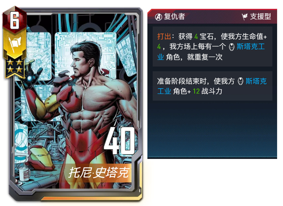 本卡打出效果有些超模。考虑到假面辣豹都没有斯塔克工业词条,两个血魔体系均选用的话不会太超模,配合卤蛋可以做到一回合把血量拉满,但是一般跳6本前没有时间去找2星卤蛋,而且成长不高,整体看来不算超模