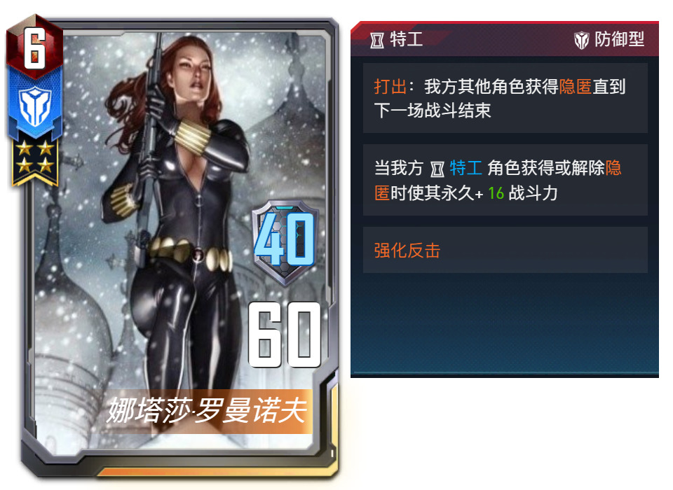 创作理念:有黄寡红寡,蓝寡也必不可少,为了补强隐匿套路便想到了这个打出技能,被动是为了能给隐匿带来少有的成长,强化反击是想到其他人都隐匿相当于自身具有守护,就加上了
