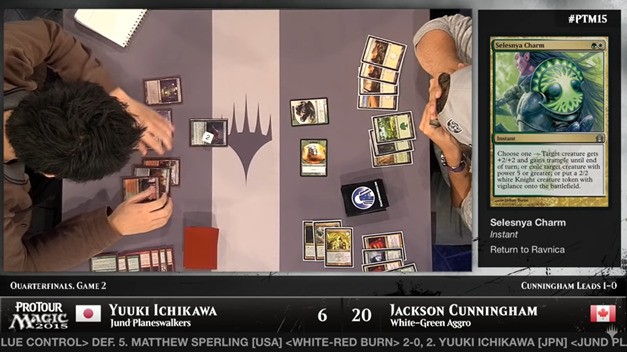 但是事实是Cunningham毫不犹豫地施放了瑟雷尼亚护符然后被市川响应施放的葛加理护符震惊了几分钟。甚至有可能他并不完全清楚葛加理护符所有的选项,但他明白他已经棋差一招了。