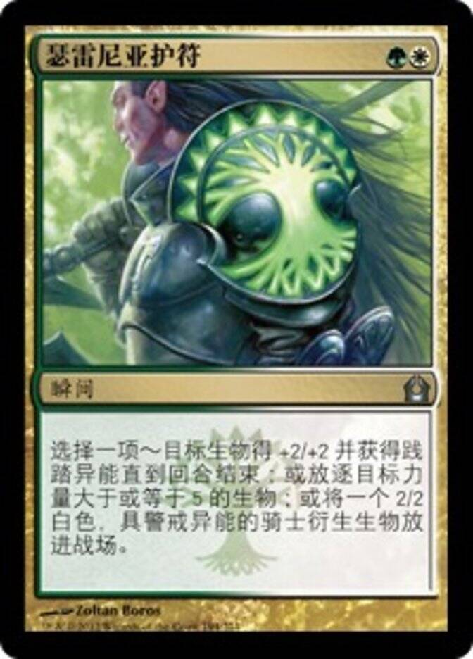 丰富的对局经验会促使你想到对手手里大概率捏着一张瑟雷尼亚护符(白绿护符),那么接下来的思路就要清晰的多了。(译注:8强比赛可以查看对方牌表,其他的招对手都要2换1甚至3换1,而且可以用重生处理,所以这里基本可以肯定对手捏着的招是白绿护符。)假设对手确实有一张瑟雷尼亚护符,怎么去处理这张拥有三个选项的战斗诡计带来的影响?如果单纯继续让我们的流浆变大,那毫无疑问会被护符放逐,进而失去了打长盘对局的关键单卡,但如果不启动流浆的异能,迫于血量压力我们也需要阻挡,等于白送一张流浆。