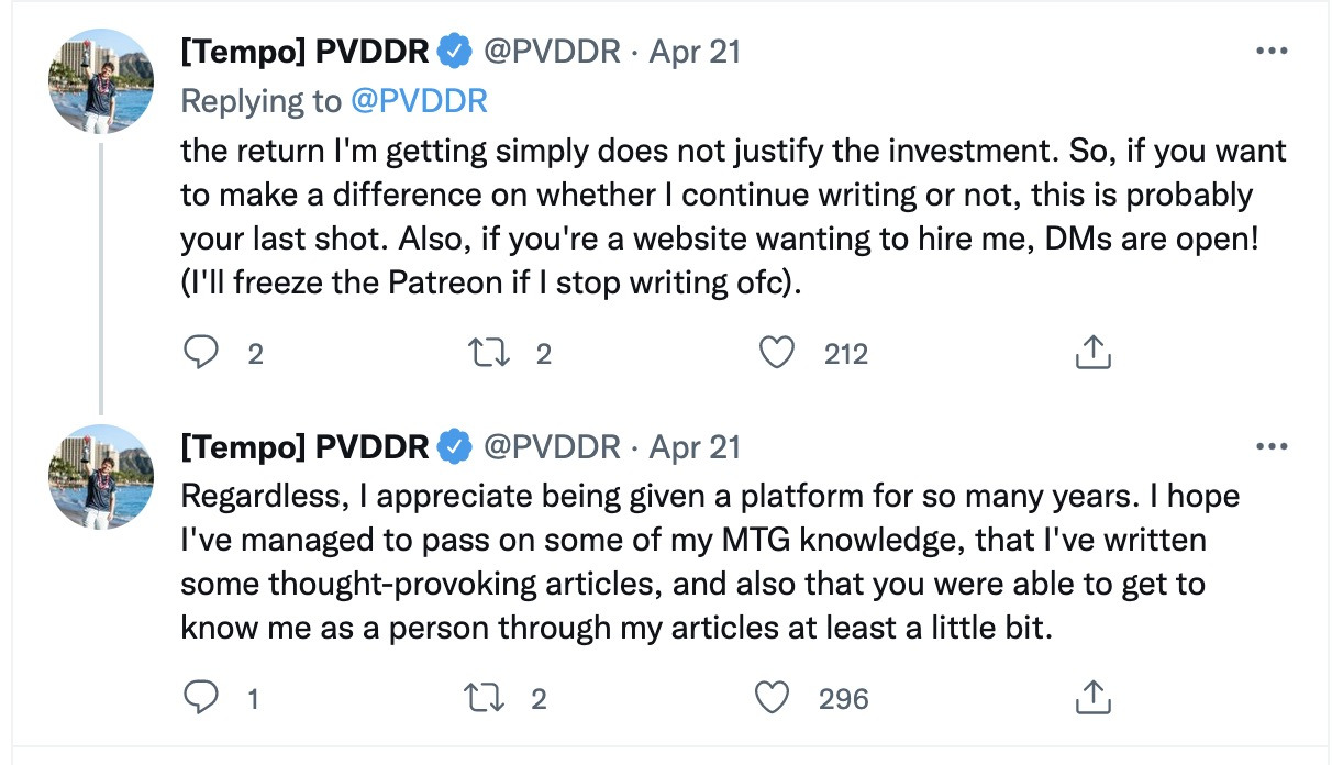 如果你喜欢这篇文章,想支持我的工作,请查看我的Patreon页面! (译注:现在已经冻结了,PV被mtgazone签下写付费专栏了,大家以后想看PV的文章可以去mtgazone看,我们也会持续搬运。)