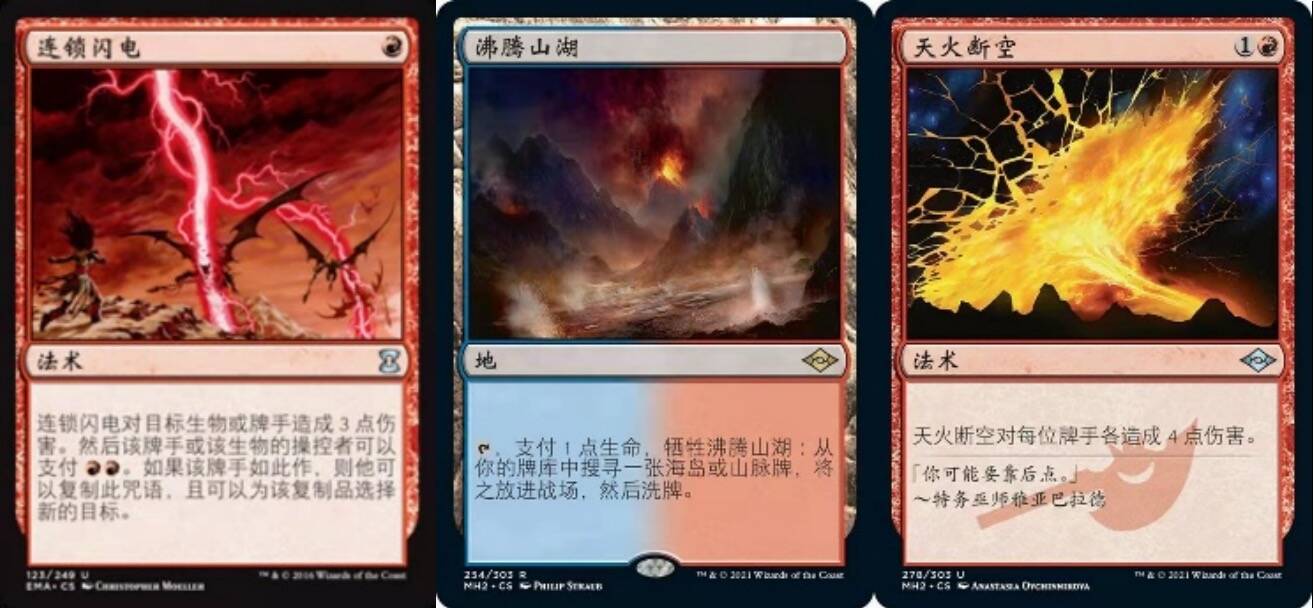 在这种情况下,连锁闪电造成的伤害是无关紧要的,因为狰狞熔岩术士的起动式异能完全可以替代掉连锁闪电。而连锁闪电的作用仅仅是提高斩杀线让Ross无法绕过去。