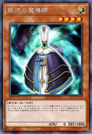 1回合1次,自己的主要阶段时才能发动。这张卡的等级直到结束阶段时上升4星。此外,把这张卡解放才能发动。从卡组把「银河魔导师」以外的1张名字带有「银河」的卡加入手卡。