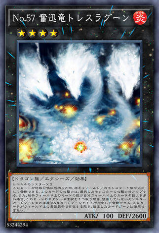 这张卡特殊召唤成功时,选择对方场上1只怪兽才能发动。这张卡的攻击力上升选择的怪兽的攻击力数值。此外,对方场上的卡数量比自己场上的卡数量多的场合,把这张卡1个超量素材取除,指定没有使用的怪兽卡区域或者魔法与陷阱卡区域1处才能发动。只要这张卡在场上表侧表示存在,指定的卡区域不能使用。